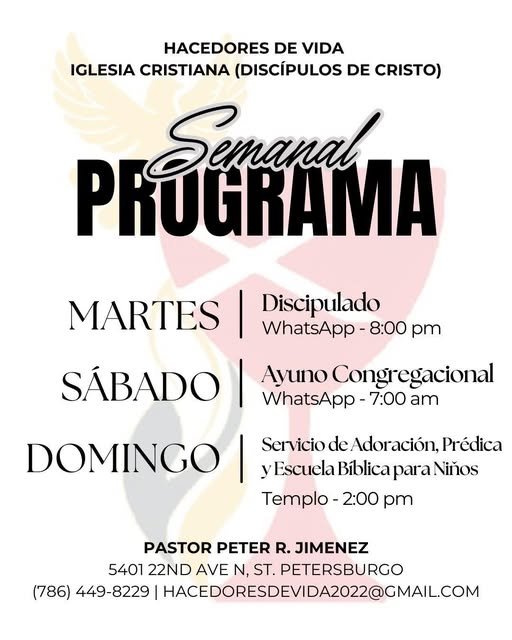 Servicio de Adoración, Prédica y Escuela Bíblica para Niños